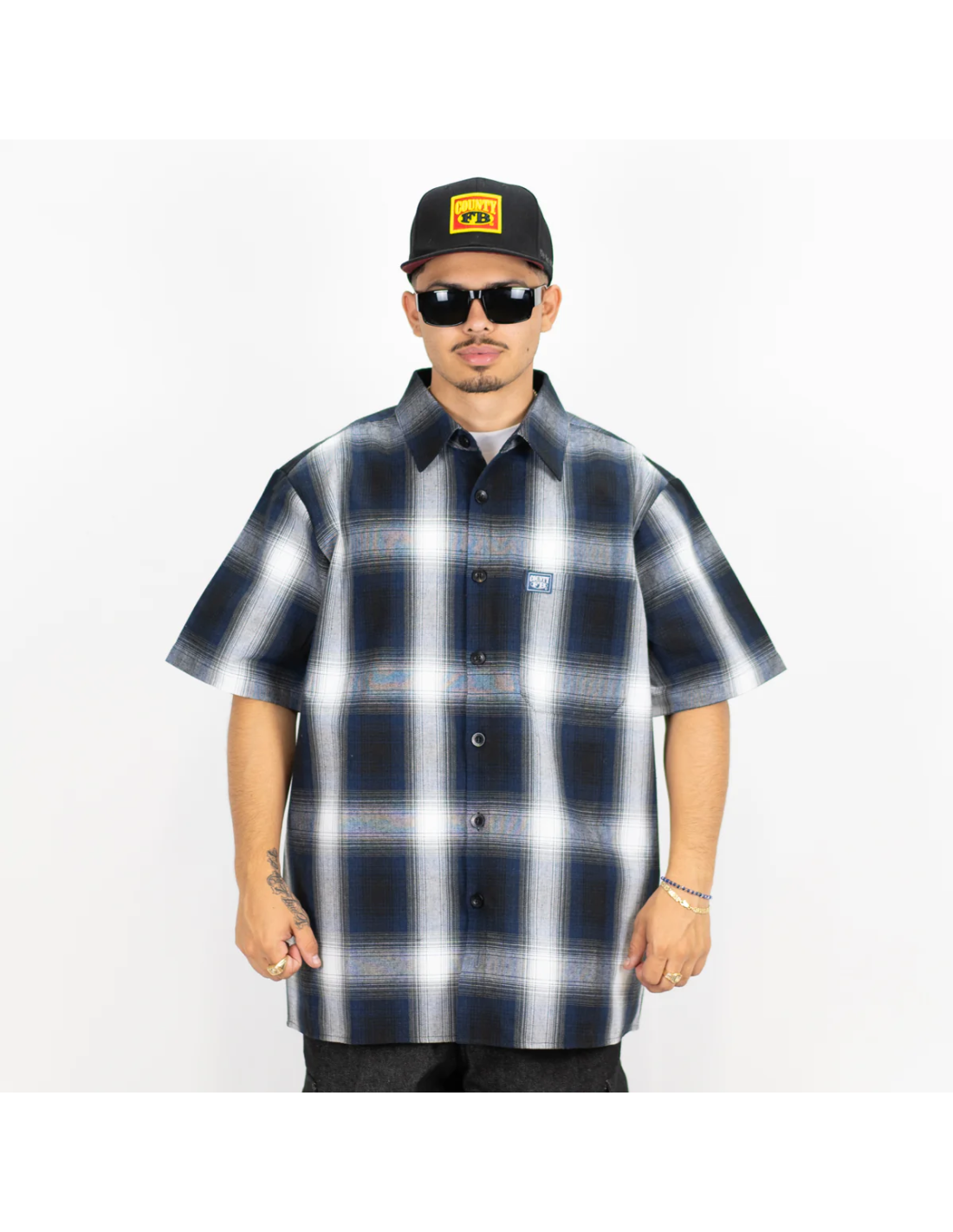 FB COUNTY SHORT SLEEVE CHEKER FLANNEL SHIRT / ROYAL - GREY - WHITE