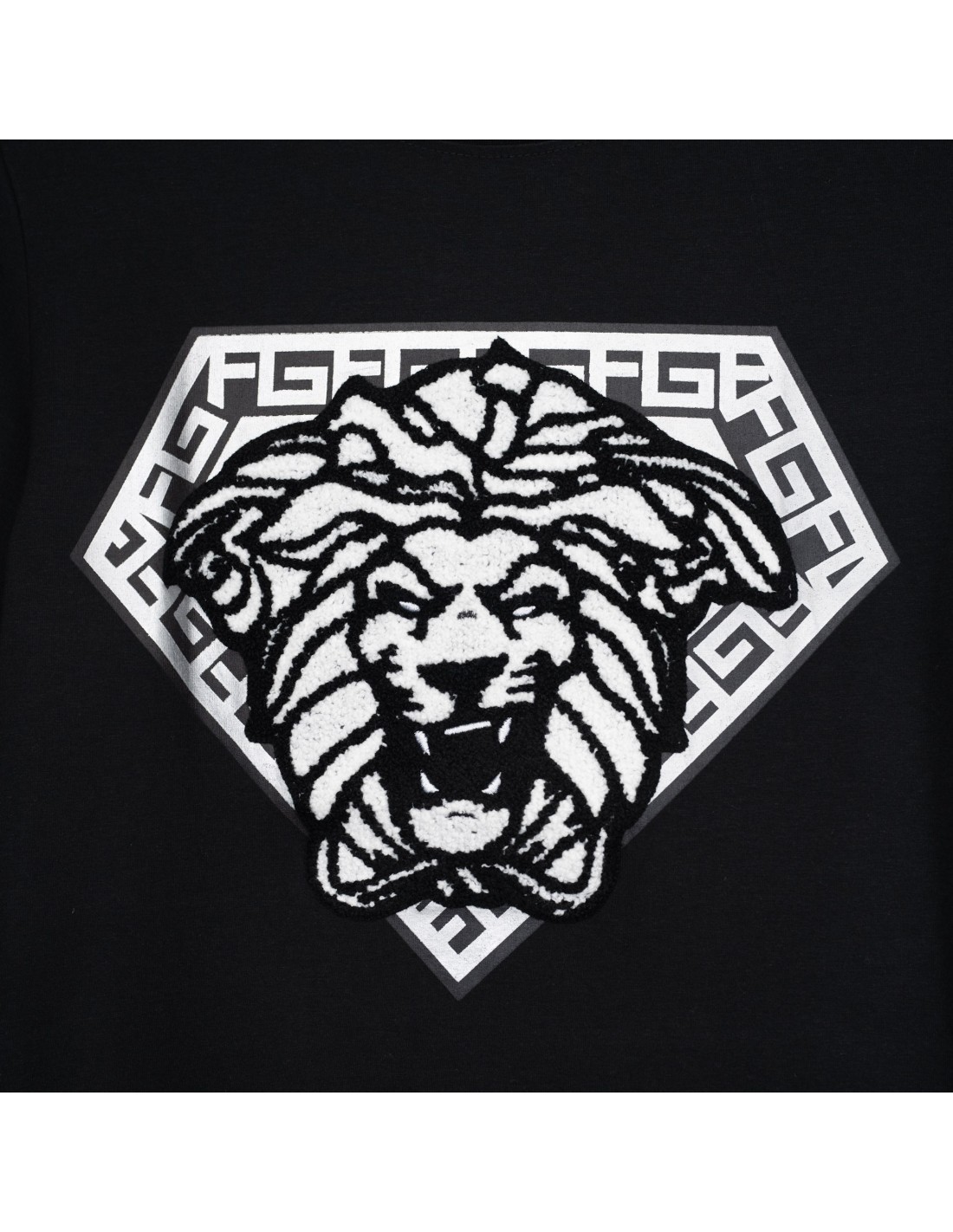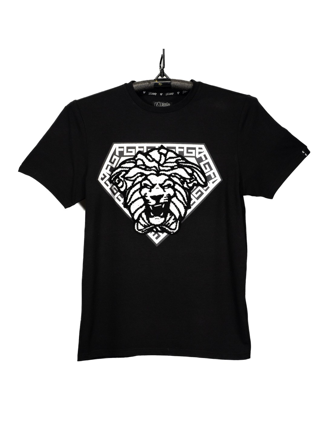 Despierta tu instinto con estilo con esta camiseta de la marca FATGUAP que mezcla poder y elegancia. El diseño de un león rugiente sobre un fondo geométrico expresa confianza y determinación en cada detalle.