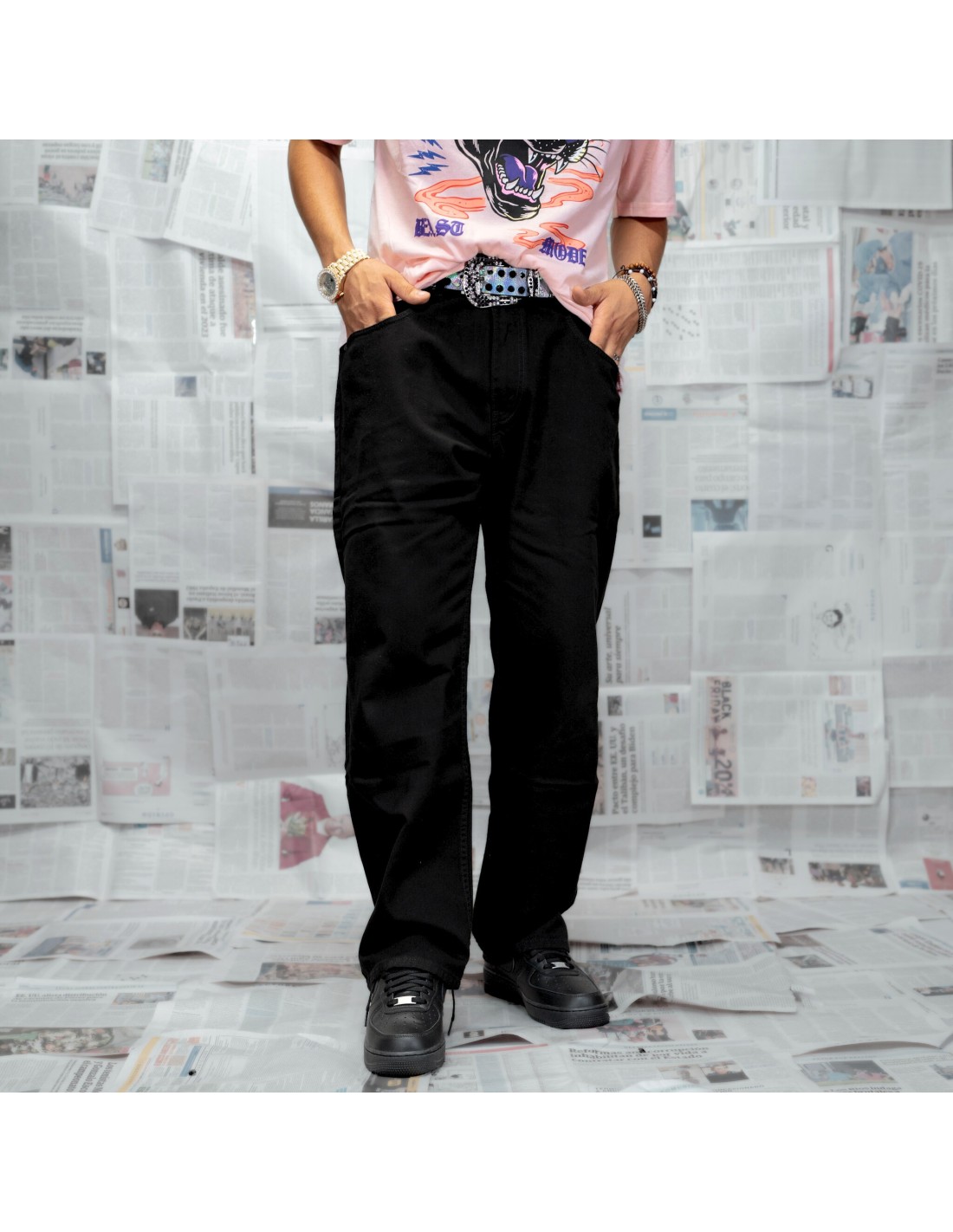 DURY trae el toque urbano definitivo. Este pantalón en negro intenso es tu aliado para un look sólido y urbano. Su corte tumbado, relajado y ajuste cómodo te dan esa libertad de movimiento que buscas, mientras el color negro se convierte en la base perfecta para cualquier outfit. Dale fuerza a tu estilo y destaca con DURY.